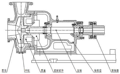 f)机械密封结构,可先泵盖连同机械密封静环、静环压盖等取下,然后拆下静环压盖,取出静环;再将轴套连同机械密封组件从轴上取下,再将机械密封和轴套拆开。