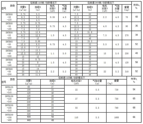 注:表中数据为常温清水的性能,选用时按实换算。泵重量不包括电机。
